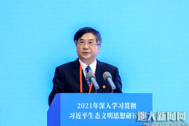 地大新聞網(wǎng)訊(通訊員張華)12月28日,2021年深入學(xué)習(xí)貫徹習(xí)近平生態(tài)文明思想研討會在成都舉行。生態(tài)環(huán)境部黨組書記孫金龍,四川省委書記、省人大常委會主任彭清華出席主論壇并作主題報告。校長王焰新院士作主旨演講,校黨委副書記王林清、環(huán)境學(xué)院黨委書記李素礦、公共管理學(xué)院院長胡守庚、馬克思主義學(xué)院副院長陳軍、科學(xué)技術(shù)發(fā)展院副院長郭海湘參會并分別參加“宣傳推廣”“實踐創(chuàng)新”“理論創(chuàng)新”“制度創(chuàng)新”4個平行分論壇。