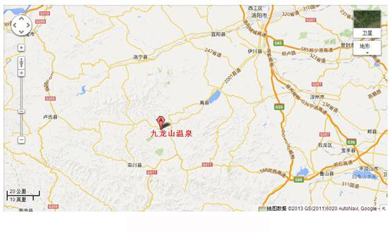| 河南省欒川九龍山溫泉旅游度假區,位于洛陽市欒川縣潭頭鎮九龍山中,緊鄰北國水鄉重渡溝,距雞冠洞、龍峪灣、老君山、白云山、陸渾水庫等景區均約60公里,是進入欒川東大門的第一景區。 |